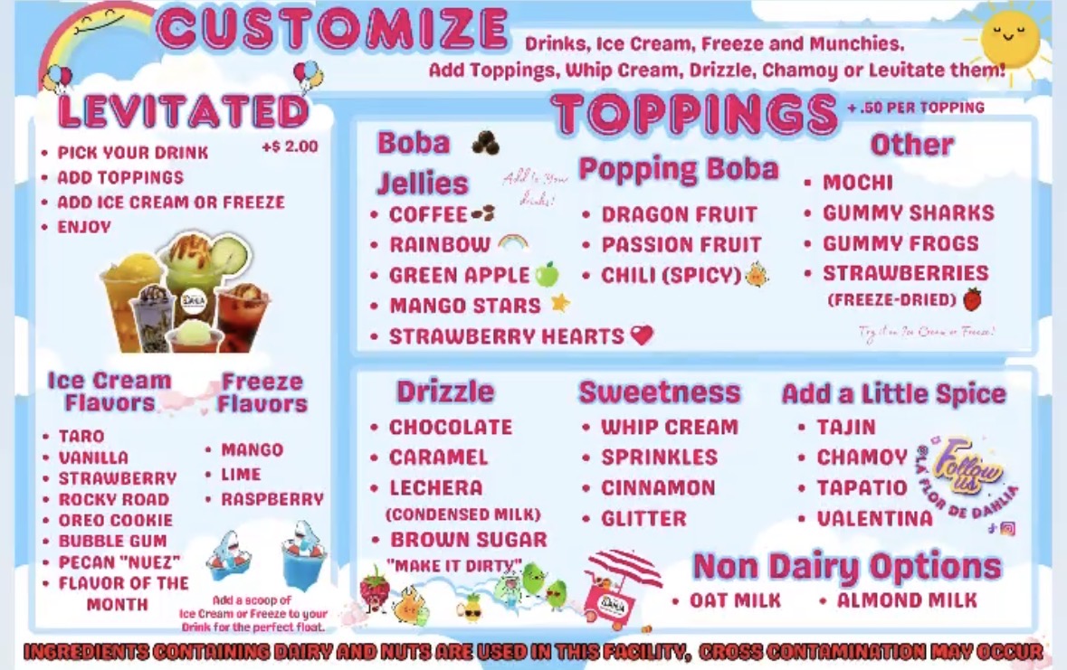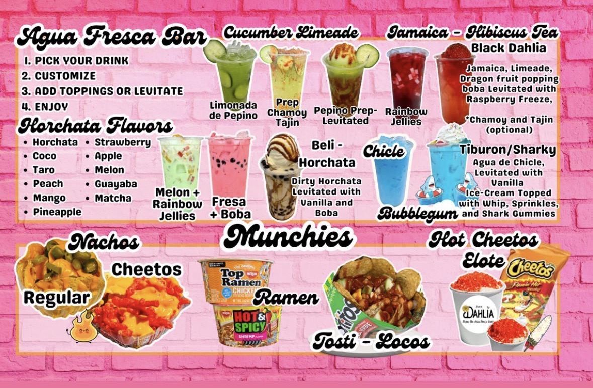 Today, we visited Flor De Dahlia for the first time. I really liked the atmosphere and decor. It is fun and festive. It is definitely a unique boba shop. The staff was very helpful and patient as we made our selections. We ordered a horchata without toppings, one with boba, a peach horchata with boba, strawberry milk tea, OG milk tea, and I love you elote. Everyone enjoyed it. We plan on returning soon and trying new items.